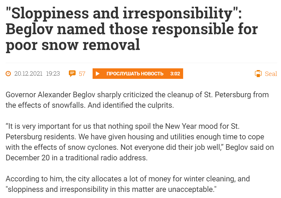 This lowlife can’t even take responsibility for clearing snow. Did the snow surprise you, Beglov? In northern Russia? During winter?