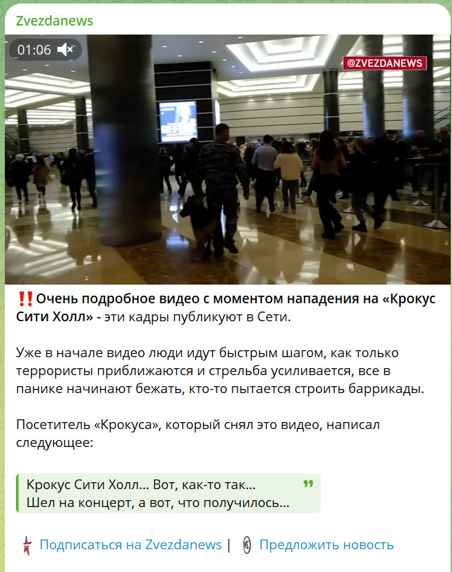 ‼️ A very detailed video of the moment of the attack on Crocus City Hall - this footage was published on the Internet.