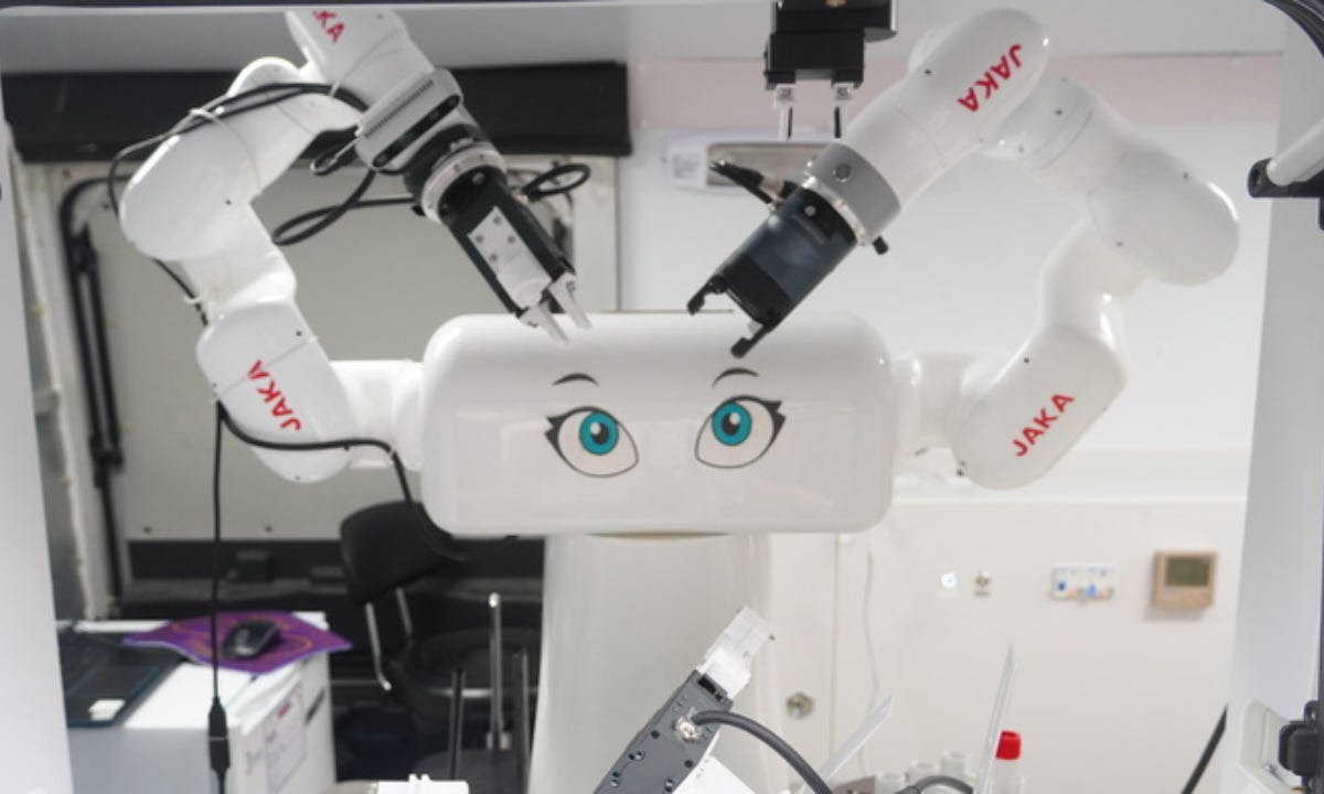 The 2.0 version of portable sampling vehicle “Sairi” and the sampling robot were co-developed by Shanghai Artificial Intelligence Research Institute (SAIRI) along with Chinese car maker Chery Automobile Co and high-tech company JAKA Robotics, which is equipped with a visual detector to locate the participants’ oral cavity and finish sampling within 30 seconds.
