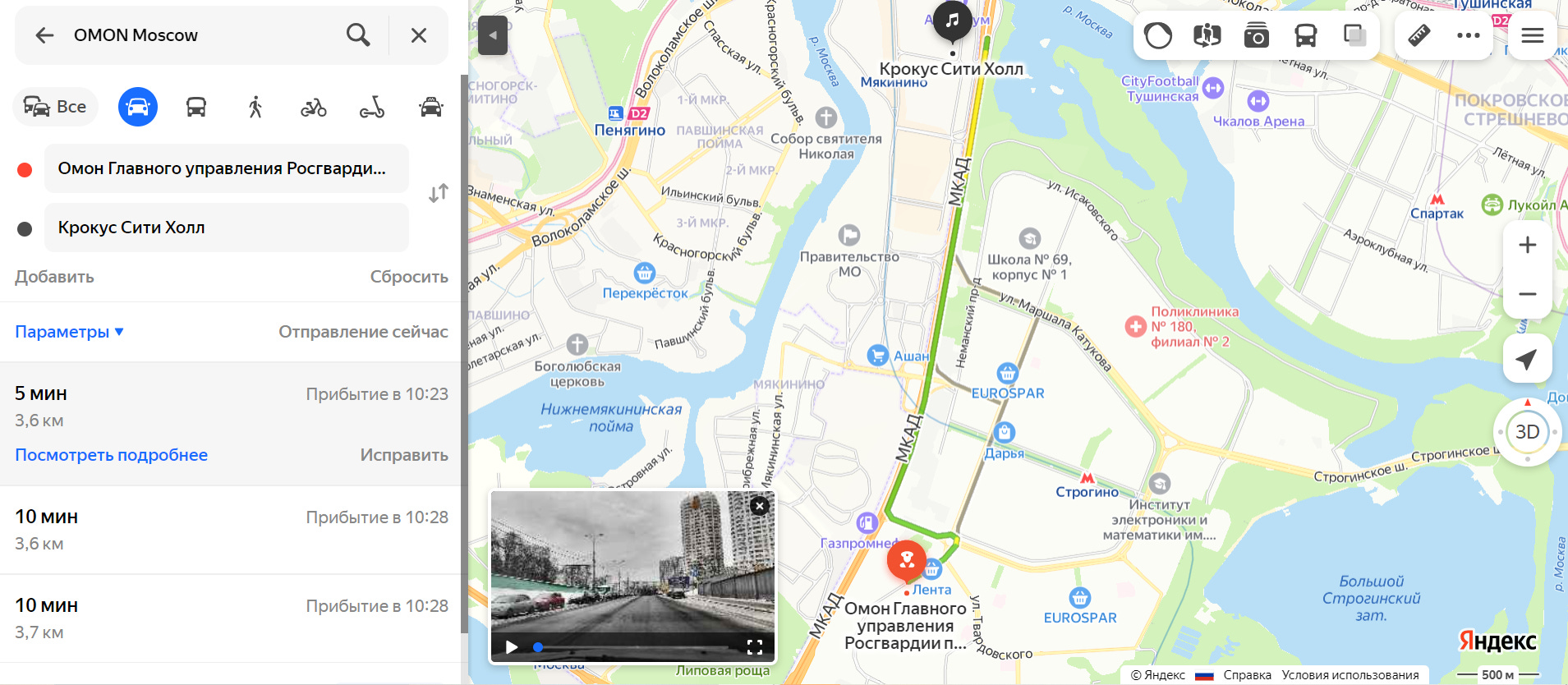 The Moscow headquarters for the National Guard’s OMON (riot/SWAT) police is located 3.6 km (2.2 miles) from Crocus City Hall: