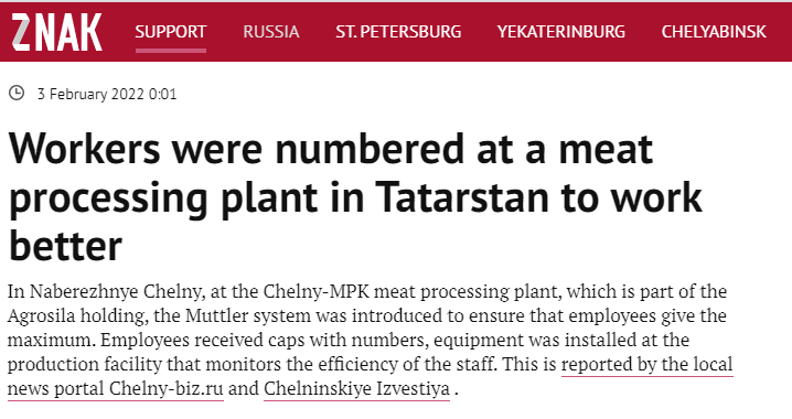 It’s debatable whether this Tatarstan nightmare qualifies as uniquely soul-crushing; probably very similar systems are already in place all over the world. And maybe algorithm meat-sorting is preferable to peeing in a bottle during your 5-minute “wellness chamber” break at Amazon, or the Foxconn suicide nets.
