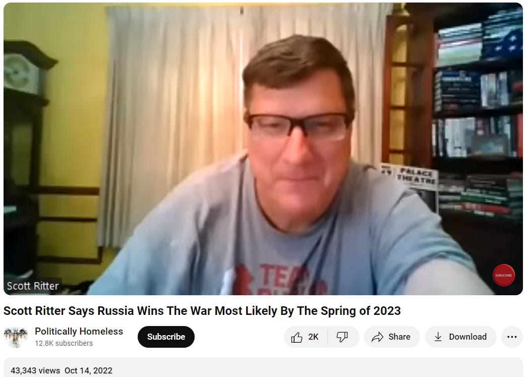 It was all over. Speaking on a podcast on October 14, Ritter prophesied, again, that a decisive Russian victory in Ukraine was just a few months away: