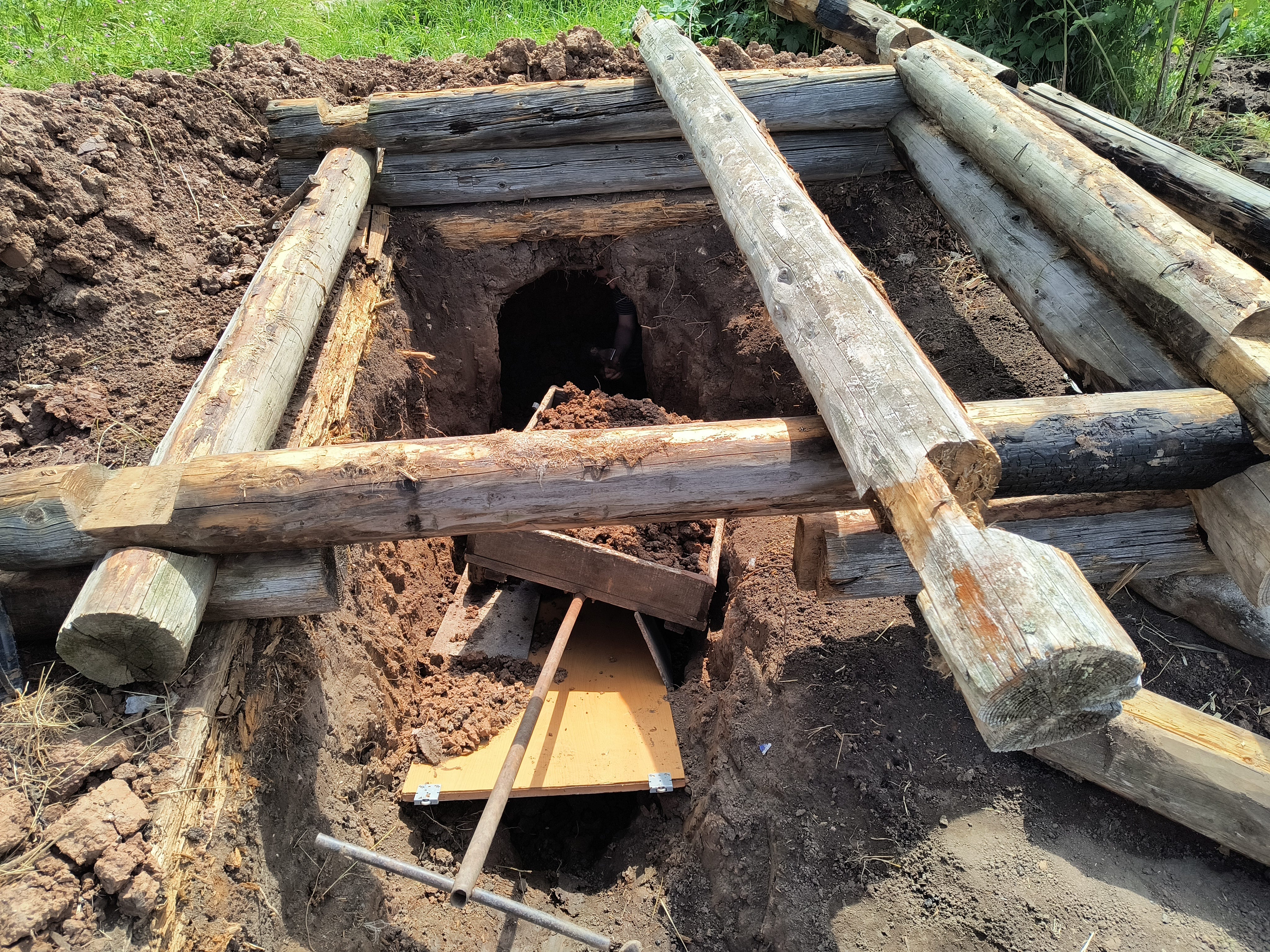What you are looking at is the beginning of what will eventually be a secret village tunnel network. The logs were salvaged from a nearby ruin and will serve as the shell of a benign-looking structure that will actually be the entrance to a top secret tunnel system that will allow me to sneak around the village undetected.