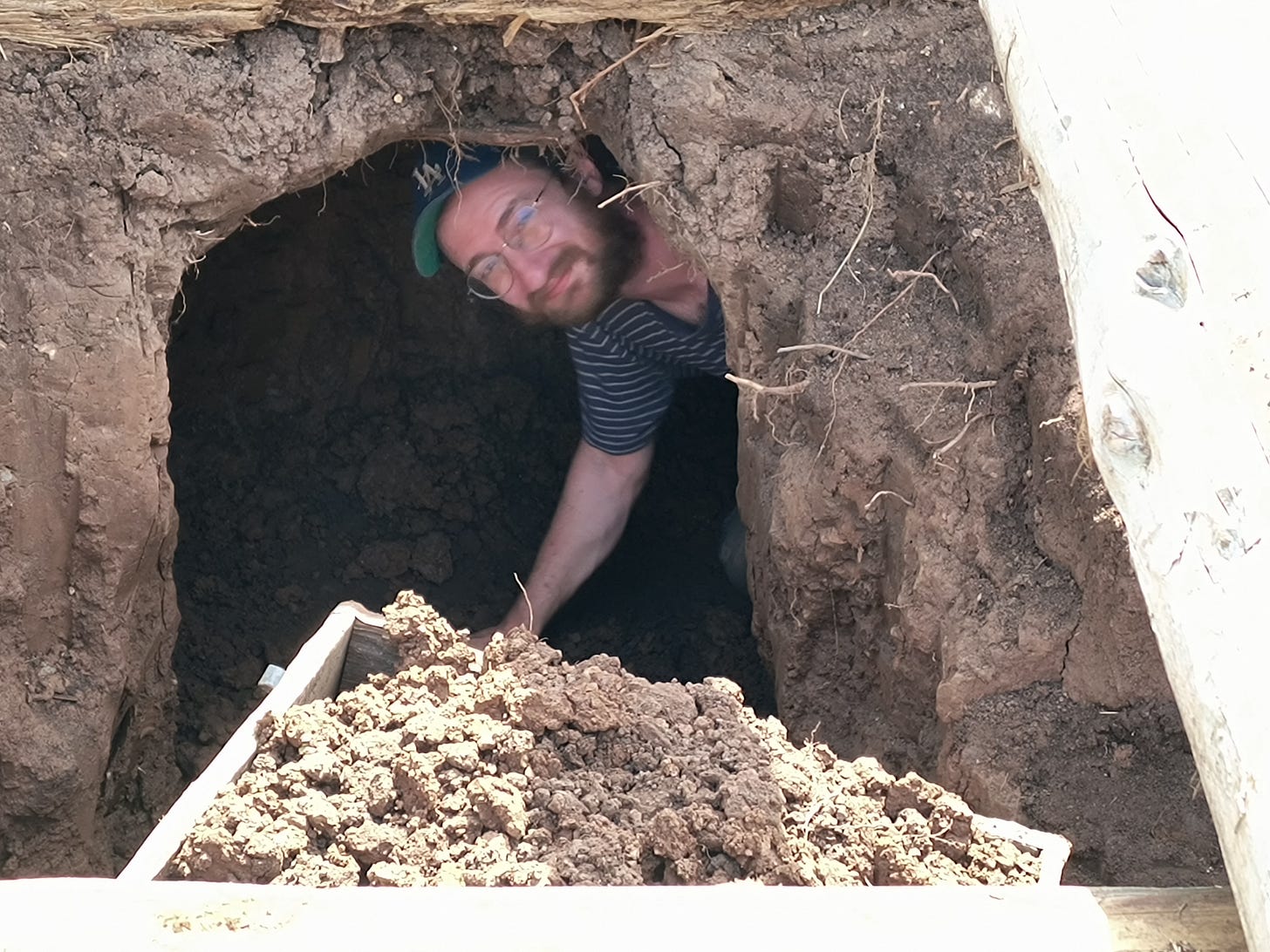 That soil looks like it's quite full of clay; is there a tradition of building earthen walls where you live? Being in contact with the earth is certainly a healthful activity per the various grounding/earthing vids I have seen. You can sell digging jobs as a healing vacation for the EMF sensitive....