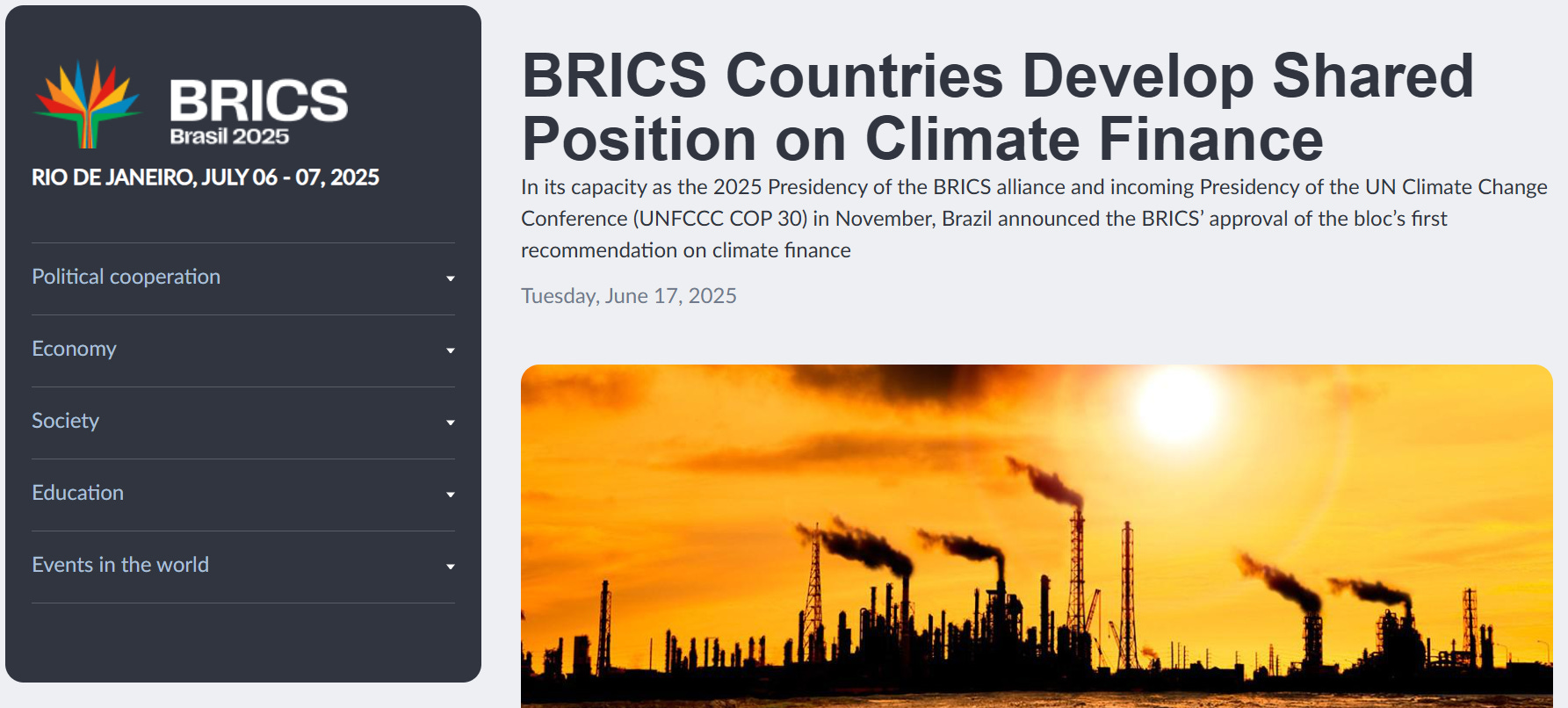 Instead, on June 17, infobrics.org announced the creation of the bloc’s “first recommendation on climate finance,” which calls on “multilateral development banks (MDBs) to mobilize private capital for climate action in the Global South”.