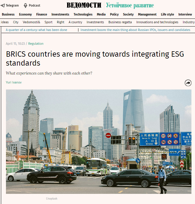 In February, a meeting of representatives of banking organizations of the BRICS countries took place under the chairmanship of the Bank of Russia. It is the Bank of Russia that sets the rhetoric of the ESG agenda in our country … The inclusion of the Bank of Russia in the BRICS climate agenda is not only one of the reasons for the fundamental revival of the [ESG] agenda in 2024, but also its consequence. The regulator should be considered a guarantor of applied work on unifying the contours of ESG practices in the international bloc.