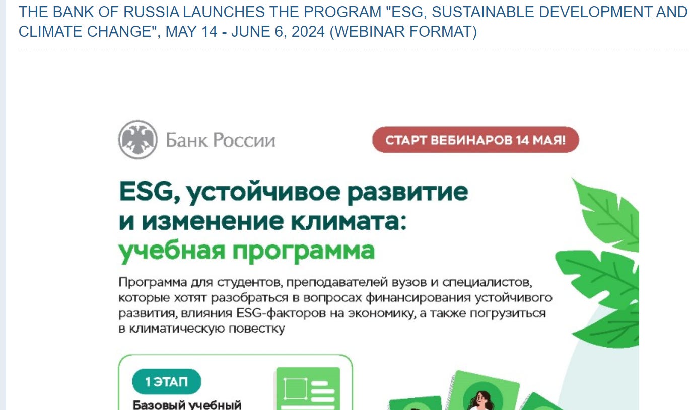 May 14: Bank of Russia introduces students to the joys of ESG