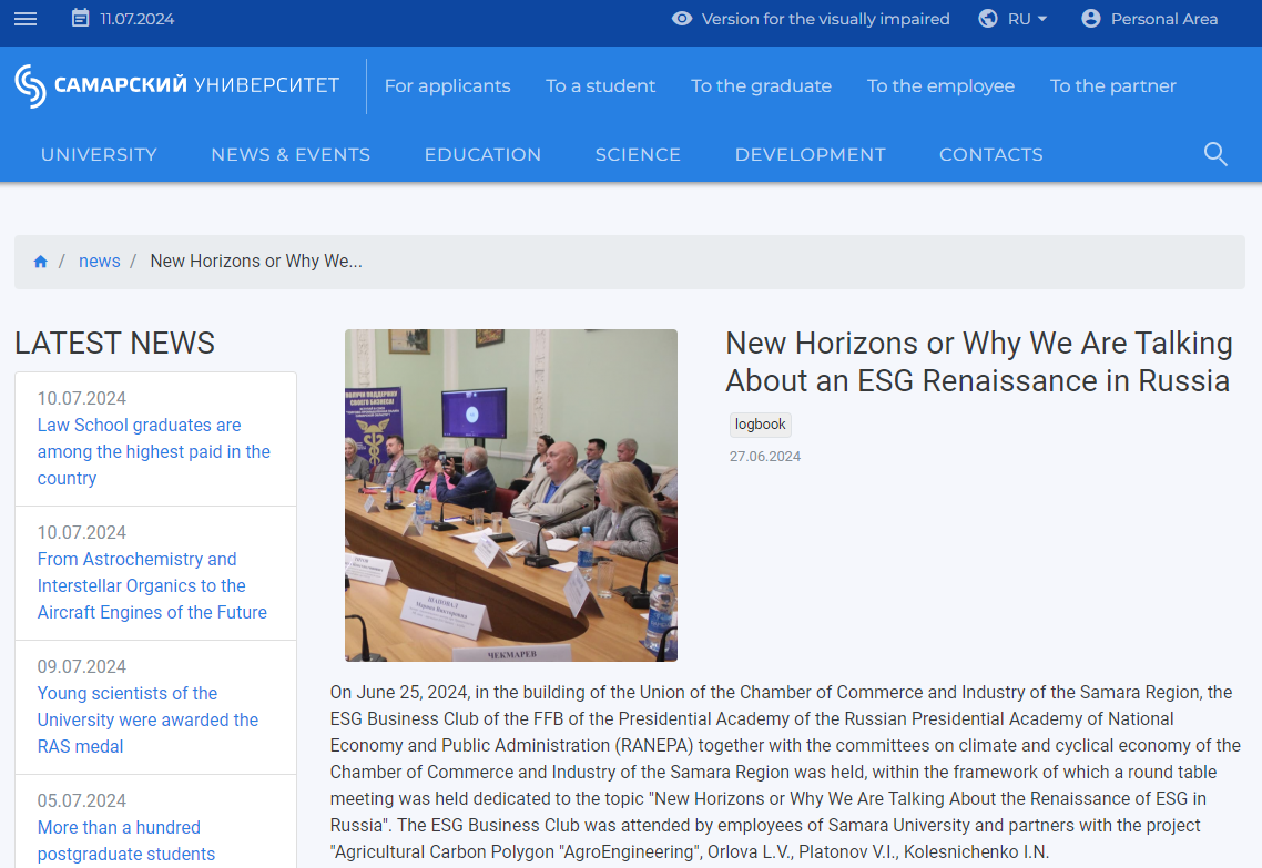 In June, the ESG Business Club of the Presidential Academy of the Russian Presidential Academy of National Economy and Public Administration (RANEPA) held a roundtable discussion in Samara to chat about exciting topics like the “climate agenda” and “green supply chains”.