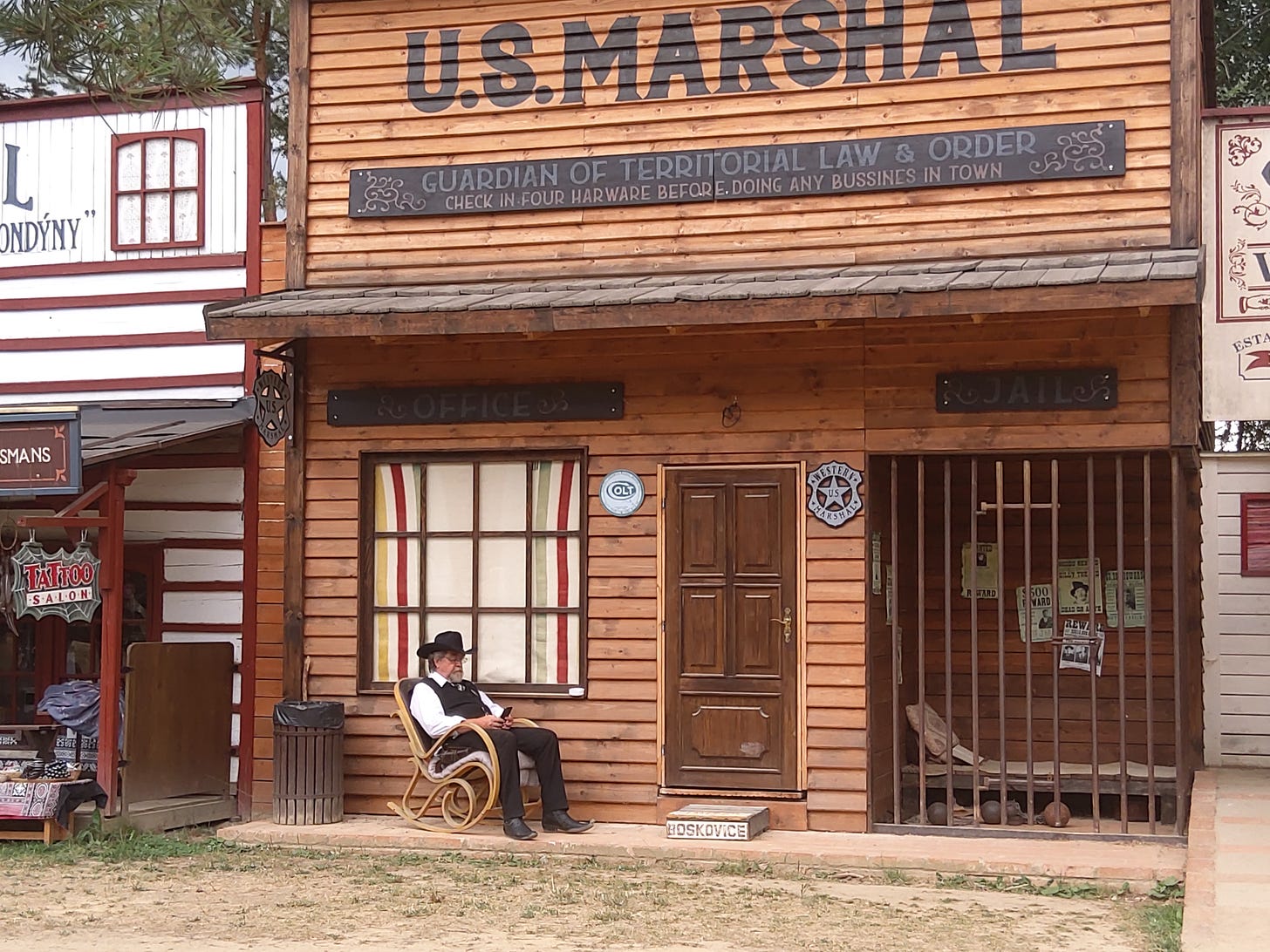 As I wandered down Main Street, I stumbled upon a United States Marshal tending to his business (feverishly swiping right on Western Town Tinder).