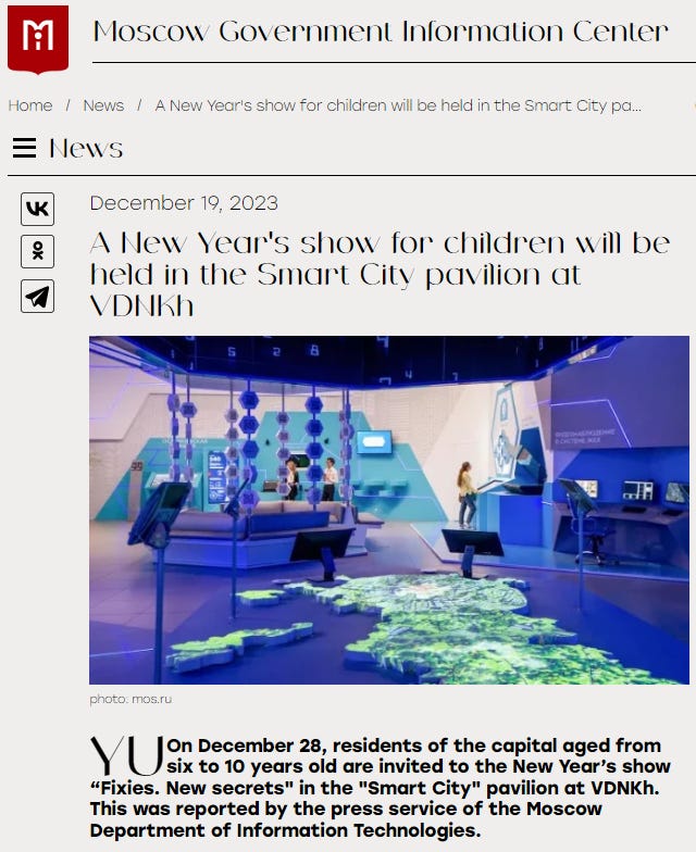 The bad news is that the Russian government is grooming young people for Smart City life. There is even an educational Smart City center in Moscow that hosts fun parties for children. Children are our future, after all.