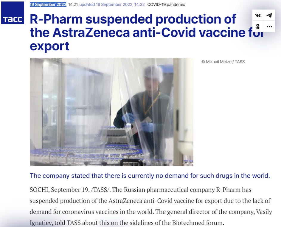 YOUR EYES ARE NOT DECEIVING YOU: RUSSIA WAS PRODUCING ASTRAZENECA’S GENETIC THROMBOSIS GOO UNTIL SEPTEMBER 2022.