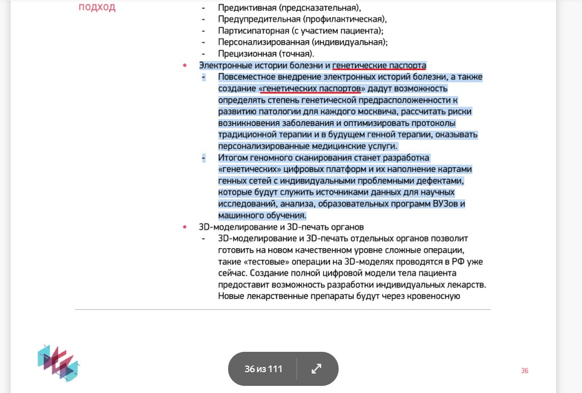 The widespread introduction of electronic medical records, as well as the creation of "genetic passports," will determine the degree of genetic predisposition to the development of pathology for each Muscovite, calculate the risks of disease occurrence and optimize protocols for traditional therapy and in the future gene therapy, in order to provide personalized medical services.
