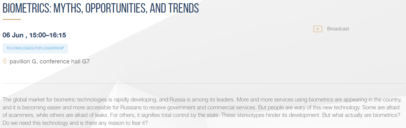 Experts will also discuss why there is no reason to fear the “rapid development” of biometric technologies in Russia: