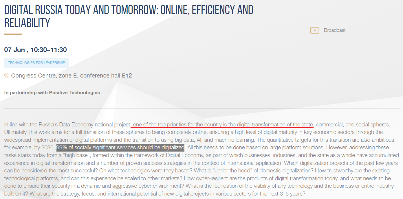 Russia’s “digital transformation” will receive special attention at SPIEF ‘24. After all, relevant stakeholders will have to work together if they hope to digitalize nearly all “socially significant” services by 2030: