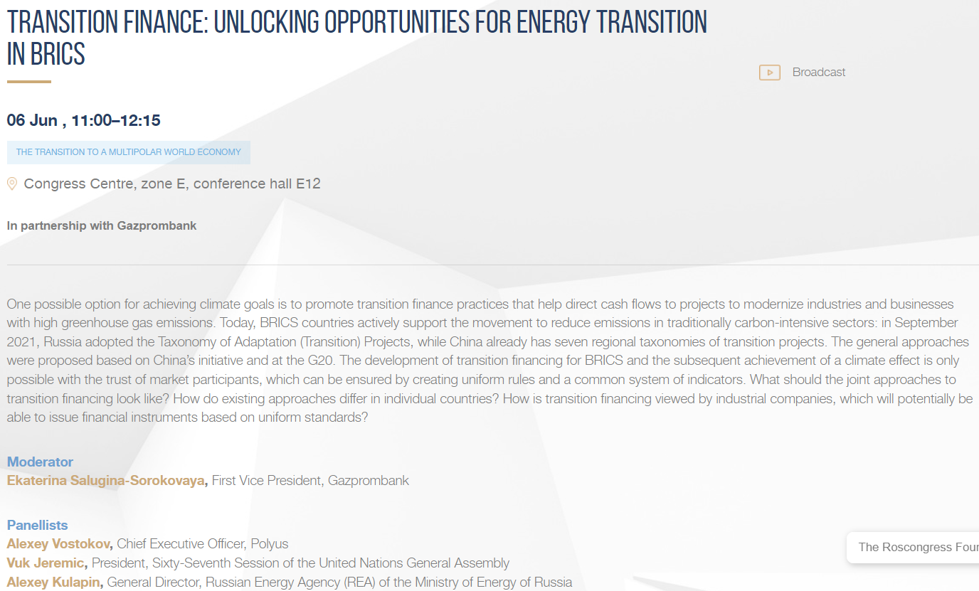 How much should one piece of BRICS-carbon cost? Five digital rubles? Maybe ten? If you come to St. Petersburg you can discuss this important topic with some of the world’s most renowned carbon connoisseurs, including Ruslan Edelgeriyev, Russia’s Special Presidential Representative on Climate Issues, and Tatiana Zavyalova, Sberbank’s Senior Vice President for ESG.