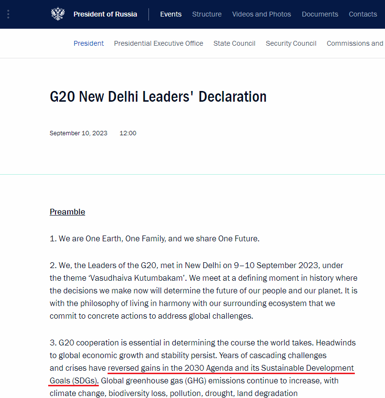 You can read the 2023 G20 New Delhi Leaders’ Declaration on the Kremlin’s website because Russia is a G20 member and has endorsed this heartwarming, humane document.