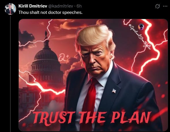 You are probably thinking to yourself: “Yes. This Kirill Dmitriev fellow sounds just like my unhinged uncle who continues to insist that Trump arrested Hillary Clinton and sent her to Gitmo, where she was executed by firing squad after being convicted of high treason during a top secret military tribunal.”