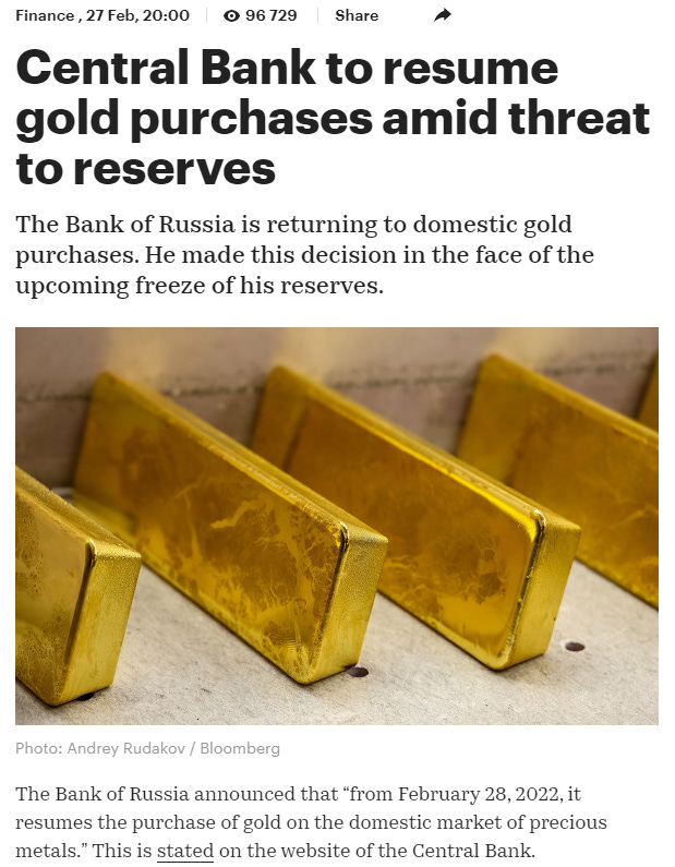 The reason the rest of the gold is gone -- yes, it's not just rehypothecated to suppress global spot, but for all intents and purposes, it is not under Russian cb possession legally -- is precisely because Herman Gref et al are WEF assets, and they are by design forcing Russia to own nothing (including no gold) and be "happy".