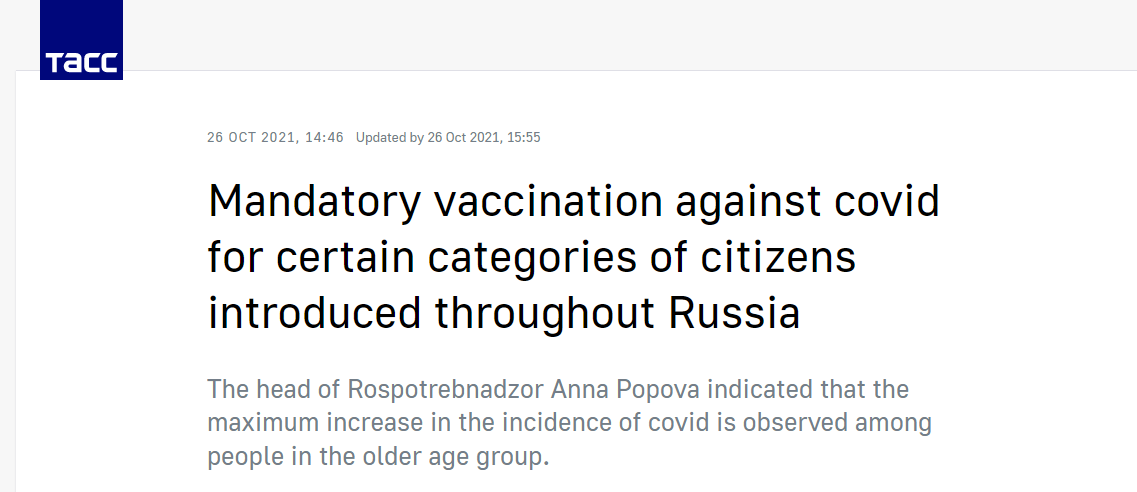 As we understand it, every single region in Russia currently has coercive vaccination policies. Is every single Russian being bullied into getting the vaccine? No, but that doesn’t mean compulsory vaccination doesn’t exist in Russia. It exists.