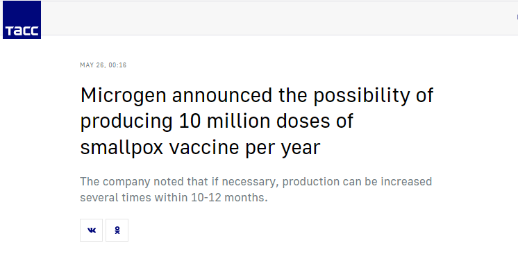 On May 18, Rossiyskaya Gazeta revealed Vector was registering a “fourth-generation” smallpox vaccine: