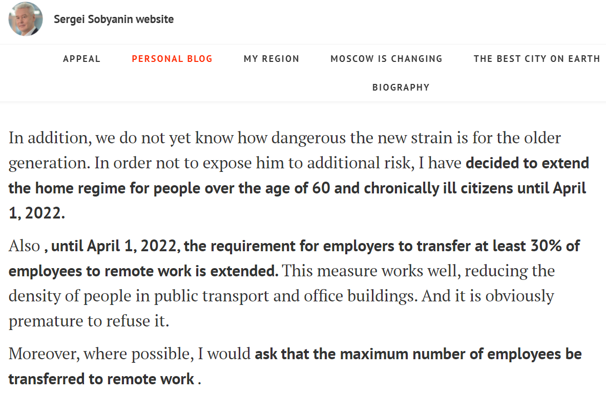 Sobyanin has also extended house arrest for old people who stubbornly refuse to get the clot-shot: