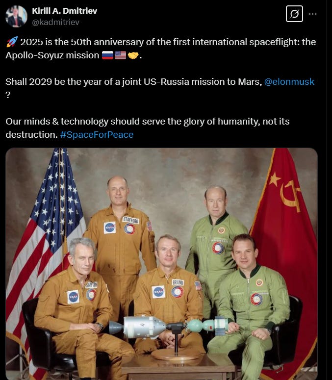 A shrewd business move. No wonder Dmitriev is eager to partner with Musk again.
