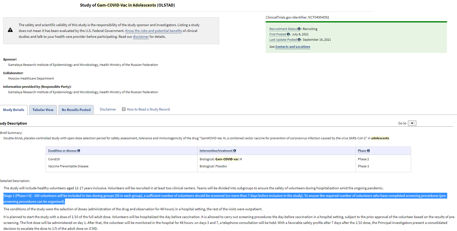 “All the necessary clinical studies” means a hypersonic Phase I-II trial involving a grand total of 100 volunteers. The “Phase III” (ha-ha) trial (involving 3,000 participants, wow so much science) is scheduled to end on December 31, 2023.