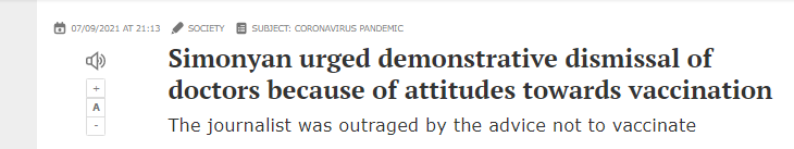 A few of her more memorable COVID witch hunts: Simonyan resurrected a 1930s Purge slogan in order to silence Russian activists who spoke out against compulsory vaccination; she argued that doctors who question the safety and efficacy of Russia’s unproven genetic slurry should be fired; she accused unvaxxed Russians of killing children; day after day, she was a total and complete psycho. She still is, by the way.