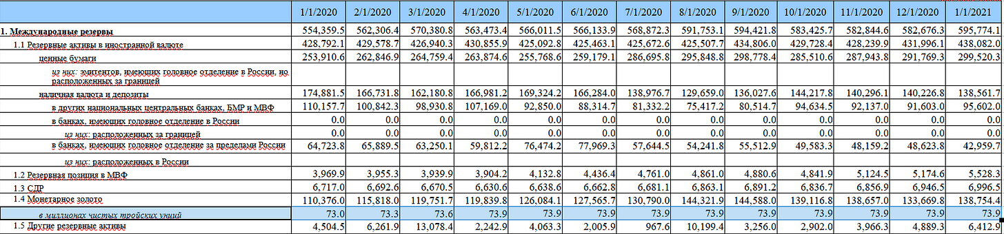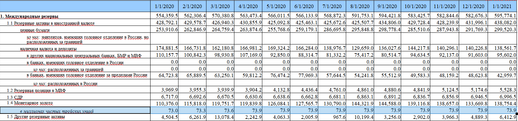 Actually, the Bank of Russia began buying small amounts of gold in July in order to keep reserves in the range of 73.8-74.0 million ounces. These purchases were made after selling gold, which is why reserves have remained virtually unchanged since April 2020.