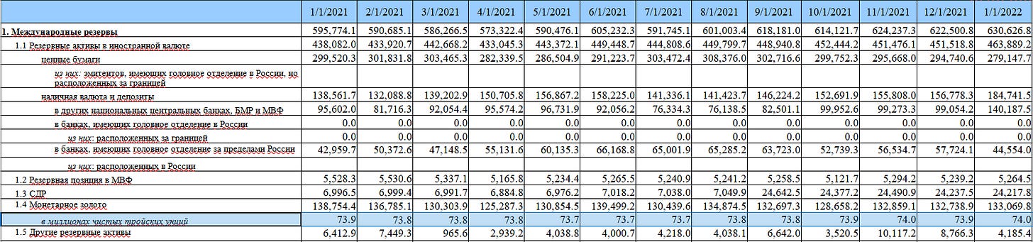 Just to emphasize how misleading RT’s report is: the current listed value (in US dollars) of the Bank of Russia’s monetary gold is less than it was on January 1, 2021: