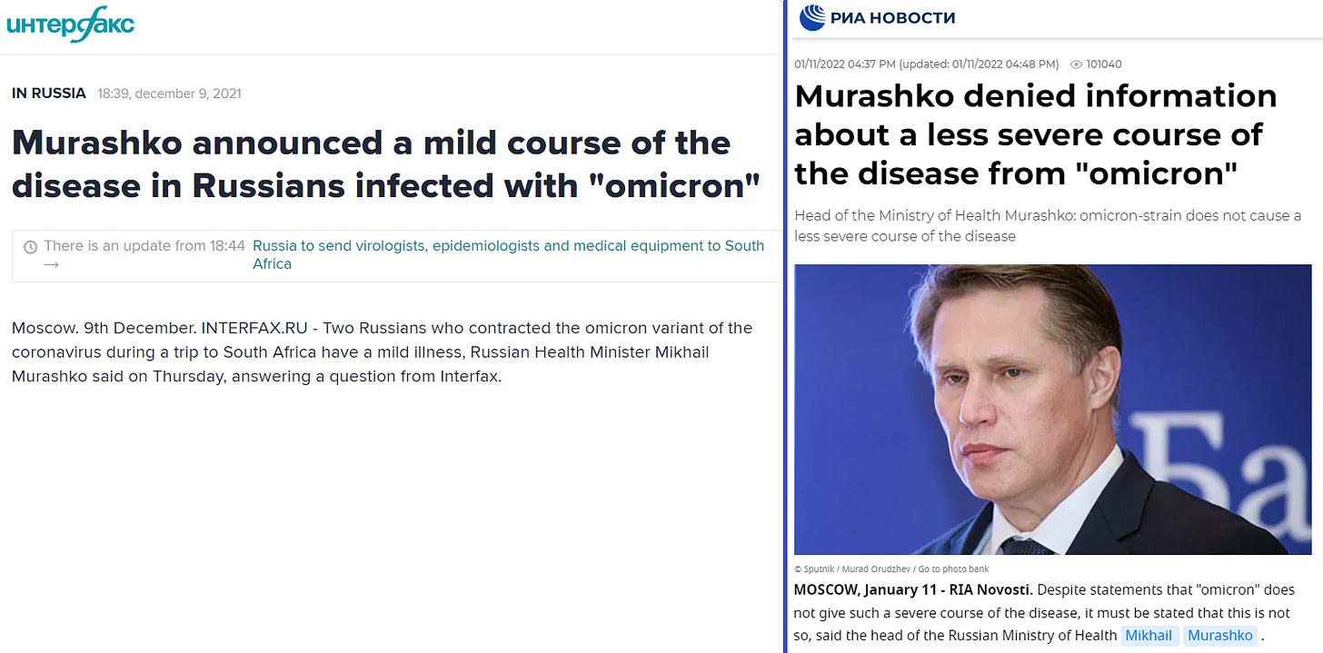Here in Russia the Omicron scam was a total and complete disaster—possibly even more cringe than the poorly-conceived attempt to scare everyone with the non-existent “Moscow strain.”