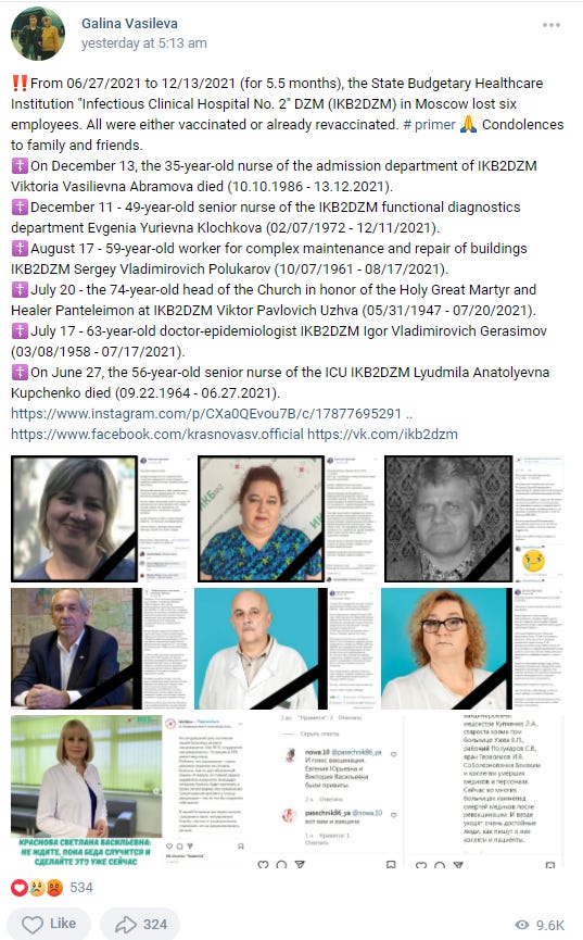 Ivanov also provided us with a 43-page document listing suspected vaccine-linked deaths among healthcare workers in Russia: