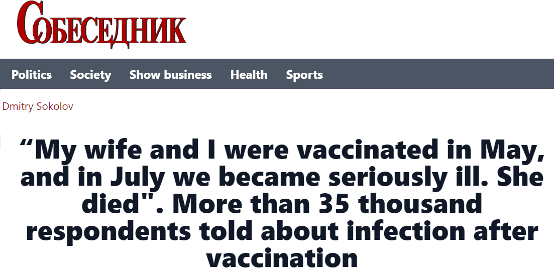 In December 2021, Russian outlet sobesednik.ru asked readers if they knew anyone who had gotten sick after being vaccinated.