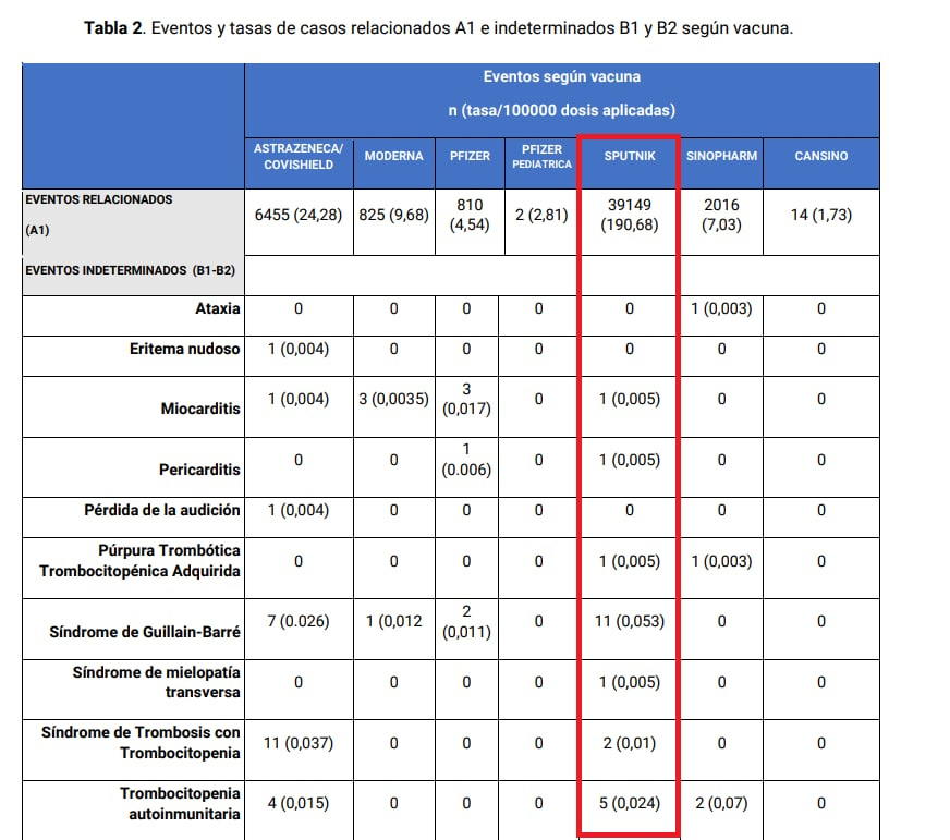 Here’s the latest vaccine safety report (June 2022) from Argentina’s Ministry of Health: