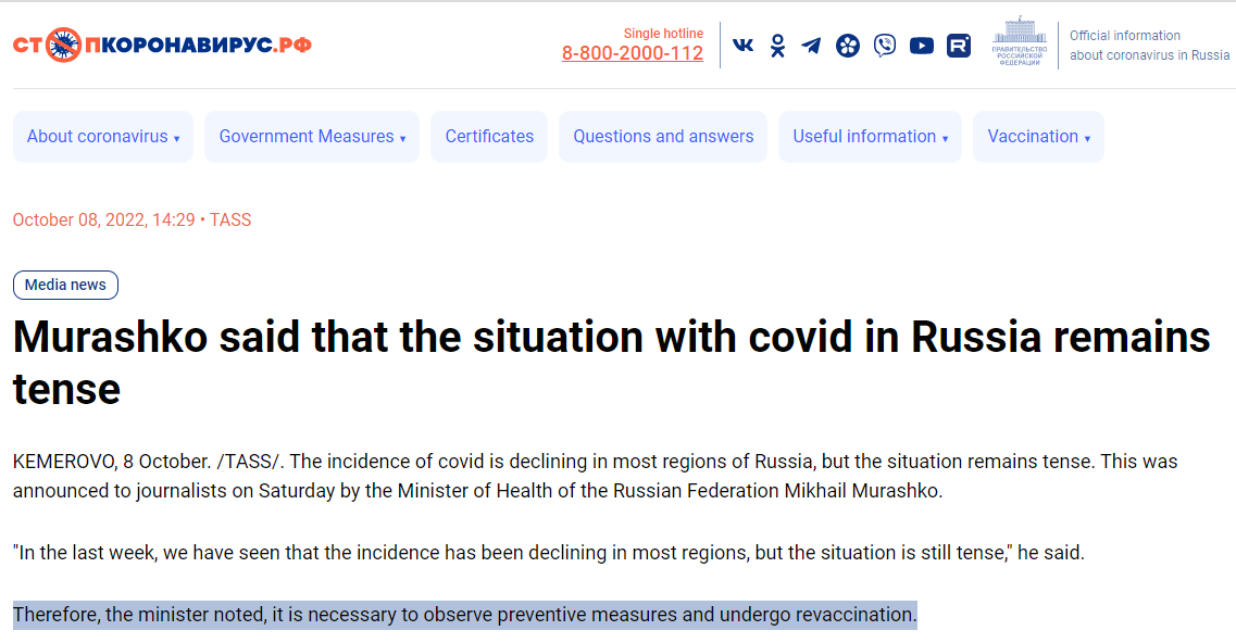 For the time being, mobilized Russians will NOT be required to receive “safe and effective” Sputnik V shots. The “epidemiological indications” could “change”—and this is something we will keep a close eye on—but there is no reason to doubt this new information provided by Explain.rf.