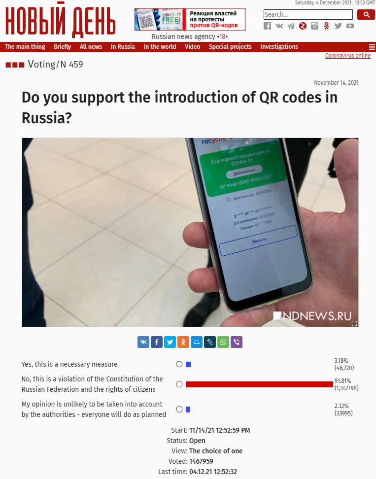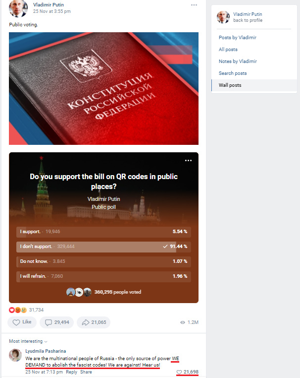 These digital passes—which will be required for all aspects of normal life and will never go away once implemented—will radically change Russian society. We’re standing at a civilization-transforming crossroads. The overwhelming majority of Russians oppose these absurd and anti-human “health” IDs. Putin demands them.