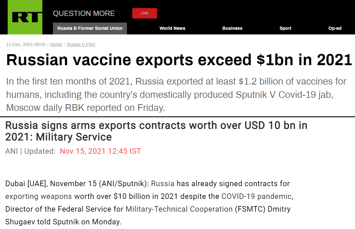 As for Sputnik V allegedly raking in more rubles than Russian arms exports: no, not quite.