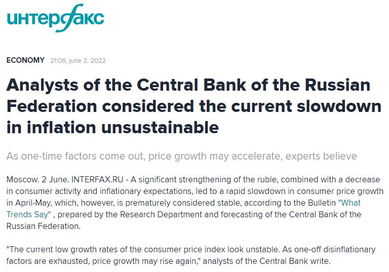 And there’s more good news: the Bank of Russia says this inflationary “slow-down” is not sustainable: