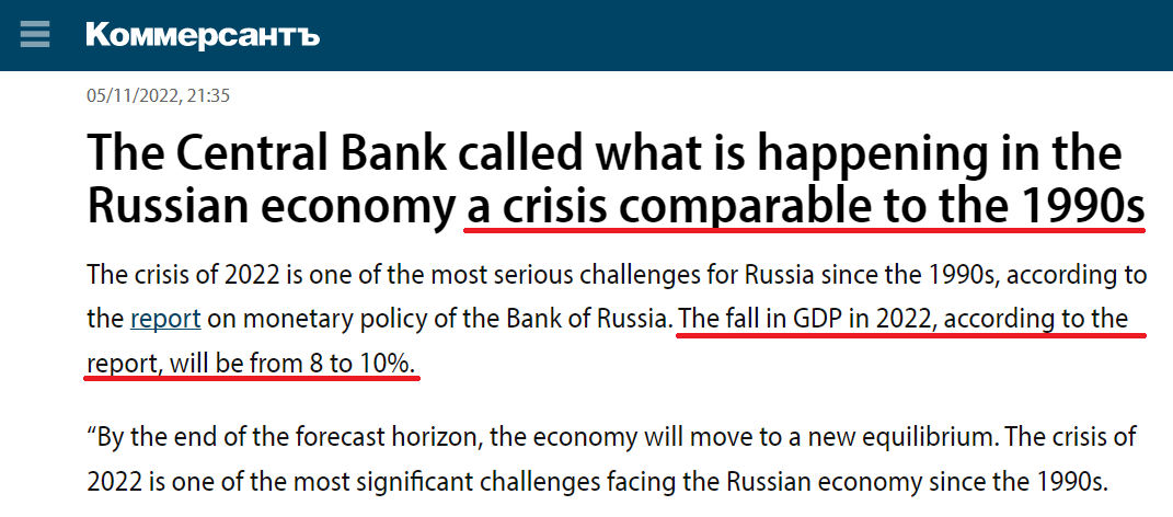 The situation is so not-okay that the Bank of Russia is openly talking about how it will take several years to make the economy work properly again: