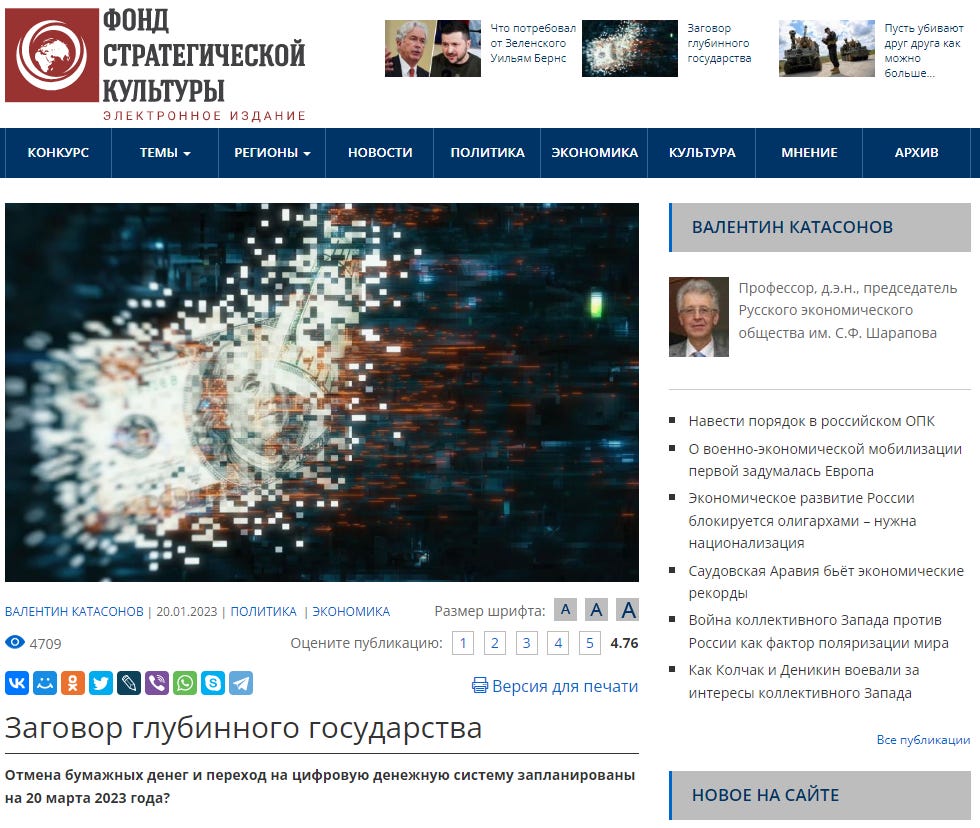 January 17, 2023: “[The digital ruble] is the brainchild of the Central Bank, and the project itself is globalist”
