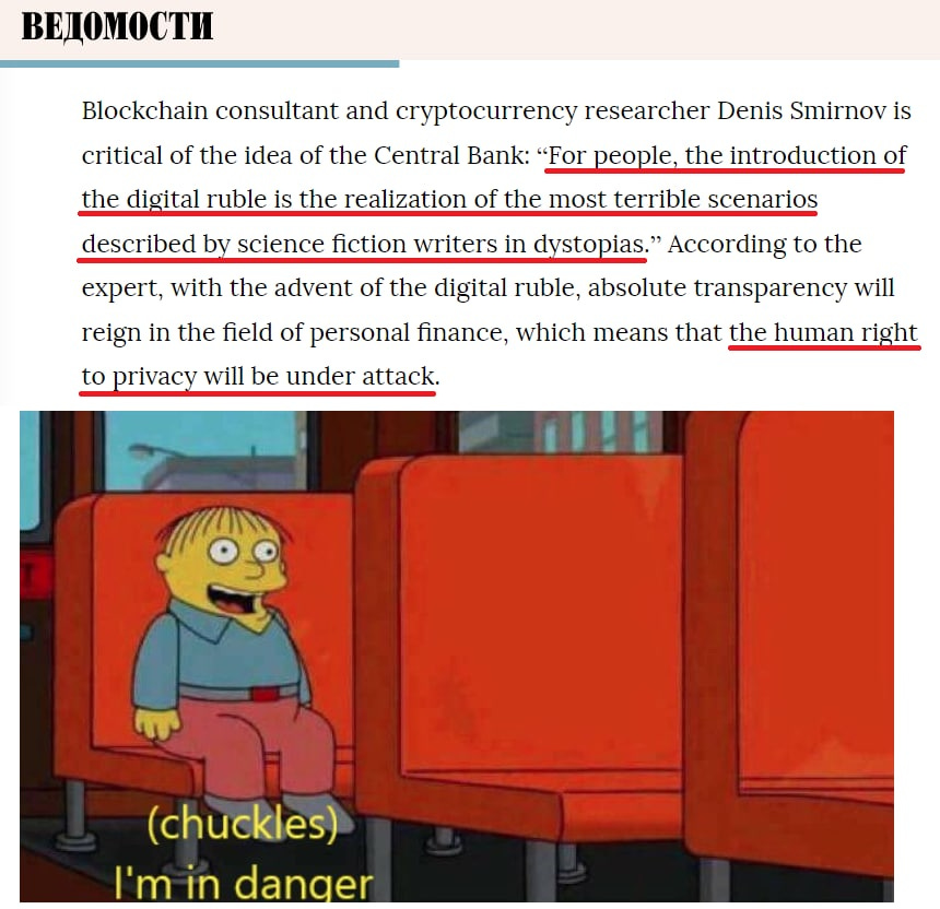 I won’t waste your time explaining why the digital ruble is no different from the digital euro, or the digital peso, or whatever kind of soul-crushing digital token your own government is currently shilling.