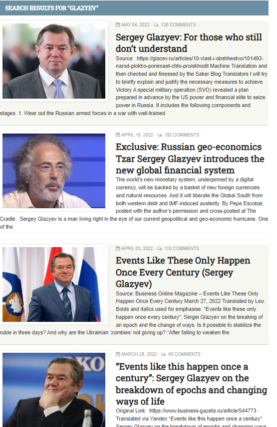 By the way, is Sergey Glazyev—hailed as a demigod by the Saker and his disciples—also a “6th columnist Putin-hater?”