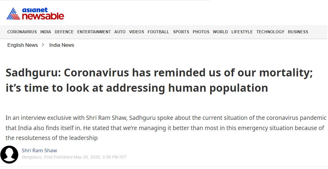 This Sadhguru character - Is anyone else bothered by him speaking about overpopulation being a problem, "we are too many"...and following that up by speaking about how we all need to get vaccinated for the health and benefit of the world?? The stench of bs is overwhelming.