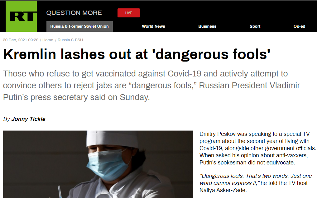 I legit LOL'ed at the RT article about: "Western right-wing forces behind antivaxxers in Russia".