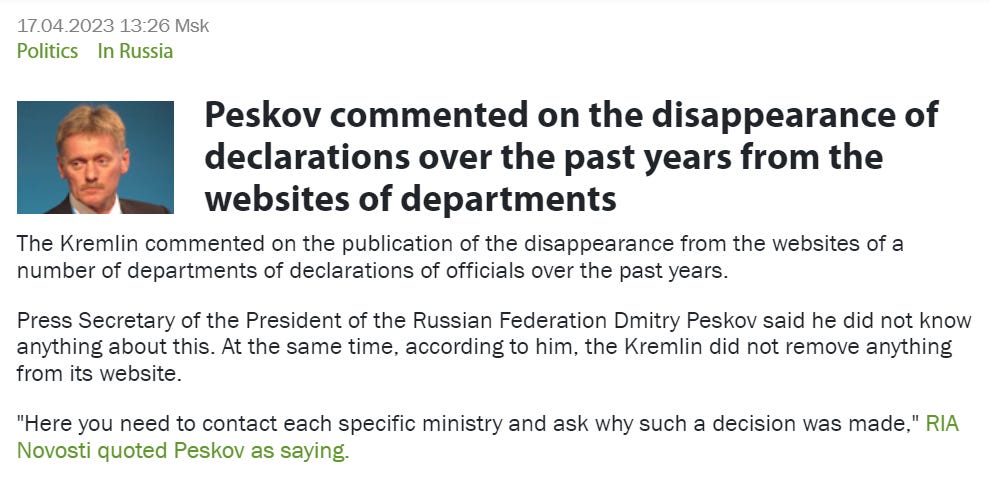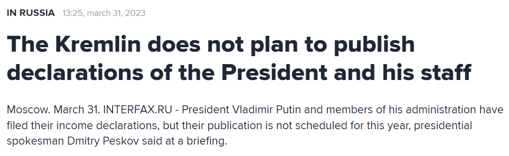 By the way: Peskov and his colleagues in the Presidential Administration will also not be sharing their incomes with the public.