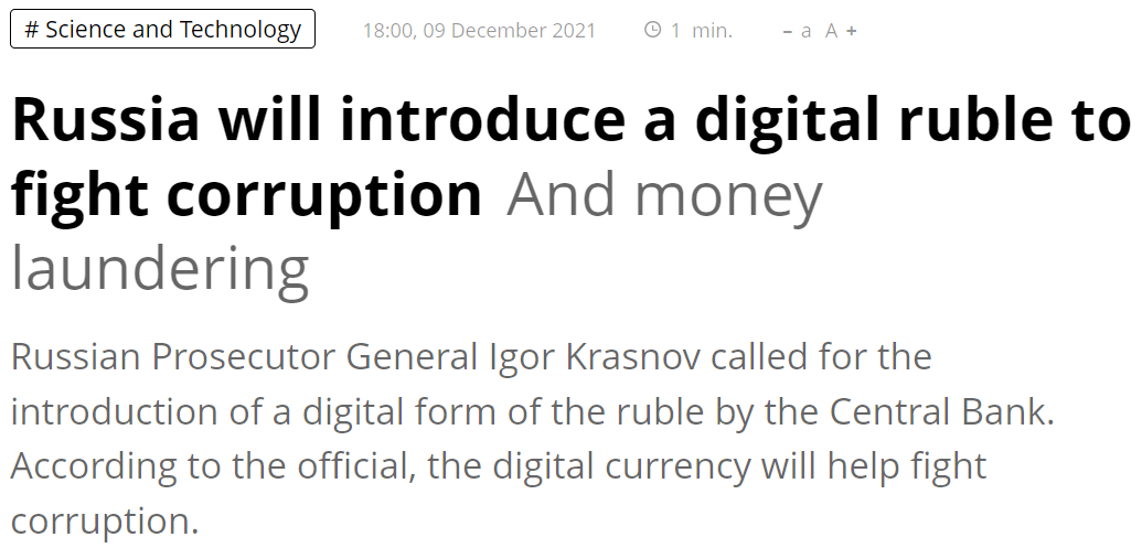 Will the Russian government be able to harness CBDCs for the Greater Good, as some in Western “alternative media” continue to claim? Or will the digital ruble be used to “tighten the screws” on ordinary citizens, while loopholes are created for “servants of the people”, as Tsargrad TV’s Yuri Pronko recently predicted?