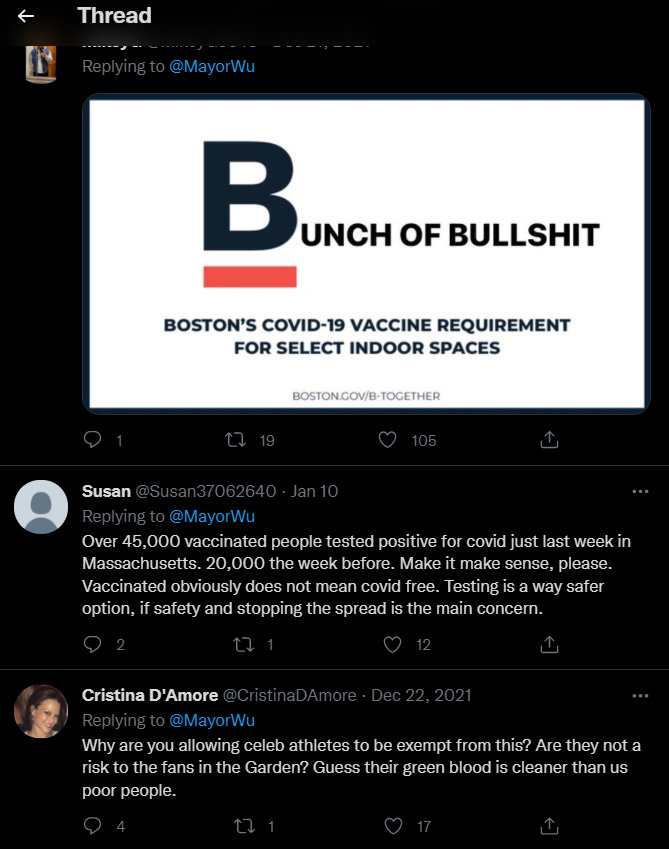 It’s completely Orwellian they’re using black and brown (faceless and muzzled) cartoon characters to advertise the “diversity” of the fascist apartheid system when the black, Latino, and native populations of Boston are the least “vaccinated” and therefore now the most heavily impacted and effectively excluded from public life. It’s quite a feat of mental gymnastics that the well-to-do wealthier, whiter residents are engaging in to make themselves believe they’re the virtuous ones for supporting and participating in this modern form of Jim Crow segregation (this time in the liberal, Northern states) in the name of public health. Democrats have lost their minds.