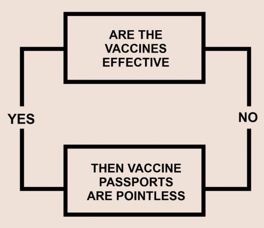 If the vaccine works—and NINETY-THREE PERCENT OF YOUR STATE’S POPULATION HAS RECEIVED AT LEAST ONE DOSE—why would you need cattle tags? If the vaccine doesn’t work, why would you need cattle tags? We are not the first to ask such seemingly obvious questions.
