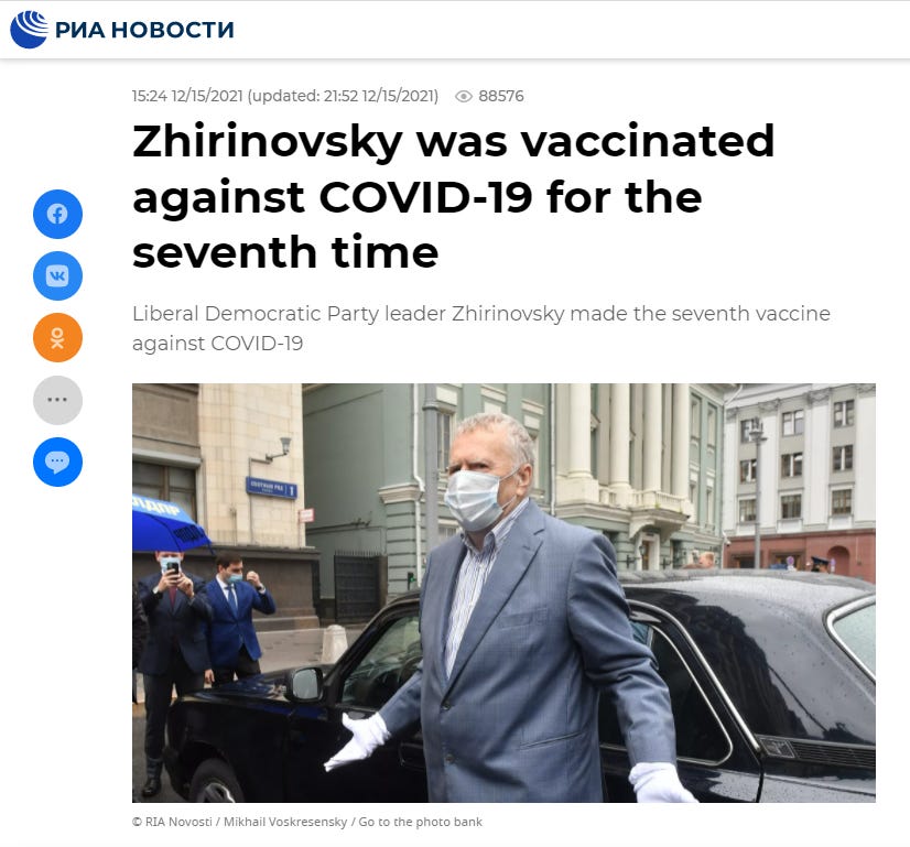 Zhirinovsky was vaccinated against COVID 7 (SEVEN!) times, proving two important statements:
