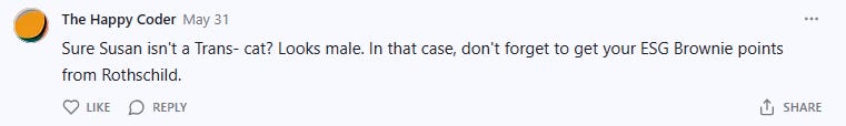 I was proud of my female kitten named Susan and so I posted revealing photos of her on the internet. Everyone loved Susan. Everyone except for one black-pilled commenter, who pointed out that Susan had man-parts.